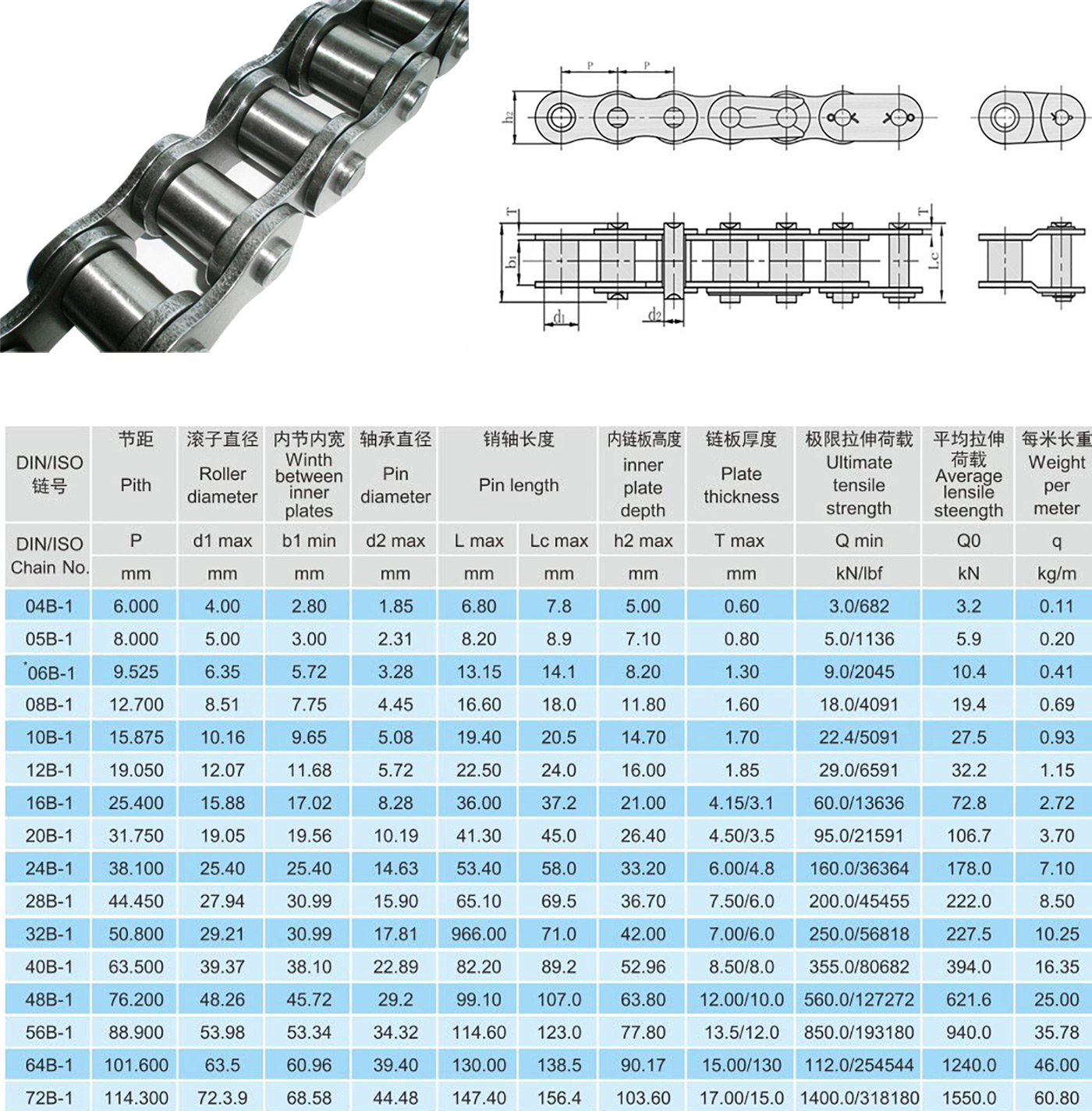 Lanțuri cu role de precizie cu pas scurt (seria B)