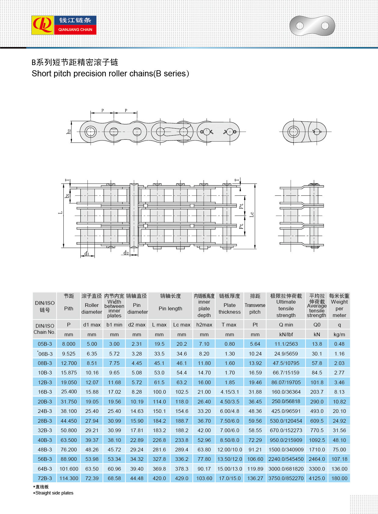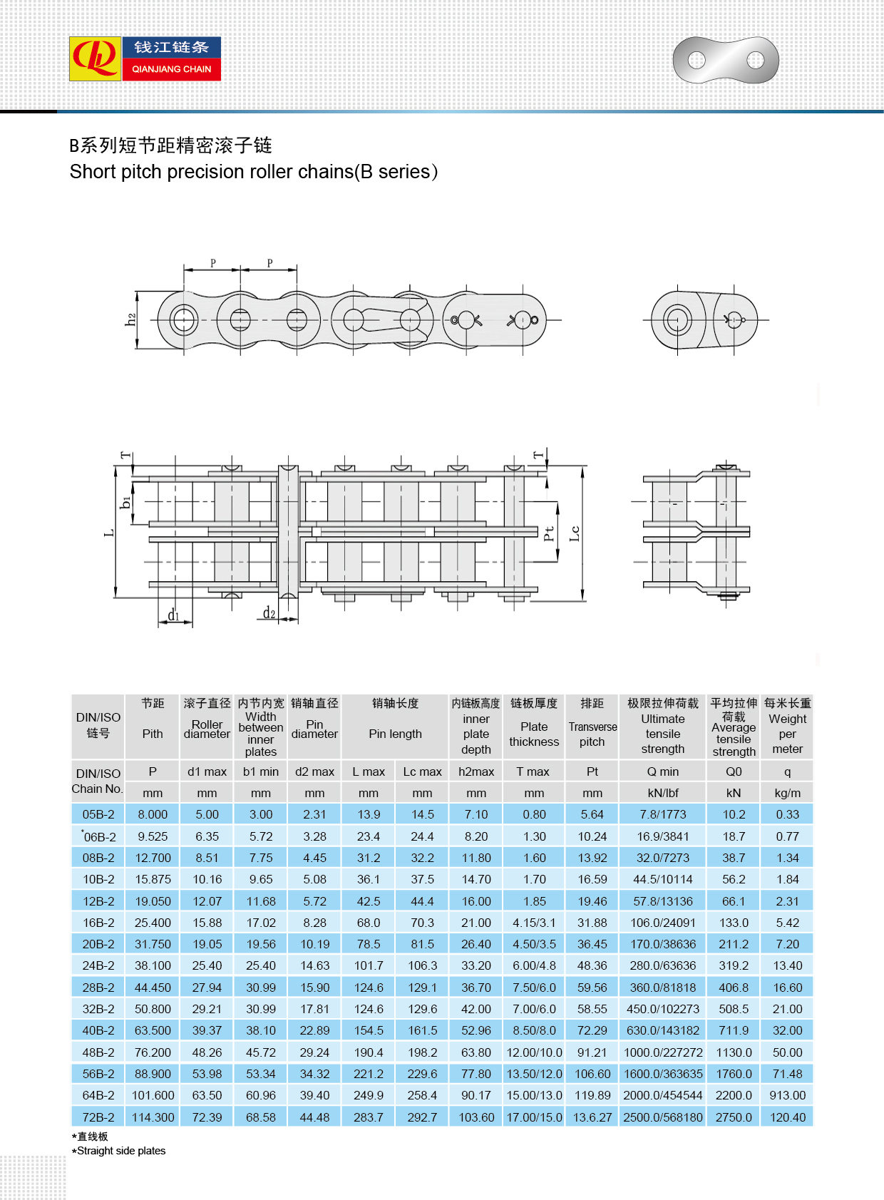 Lanțuri cu role seria B