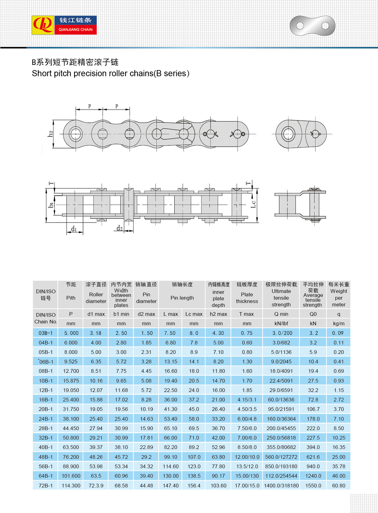 Lanțuri cu role de precizie cu pas scurt (seria B)