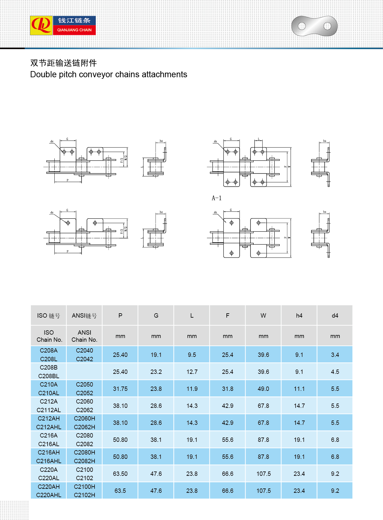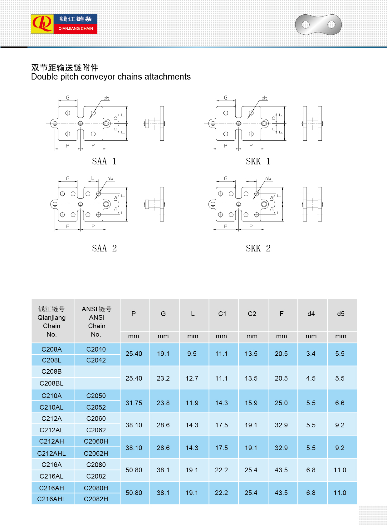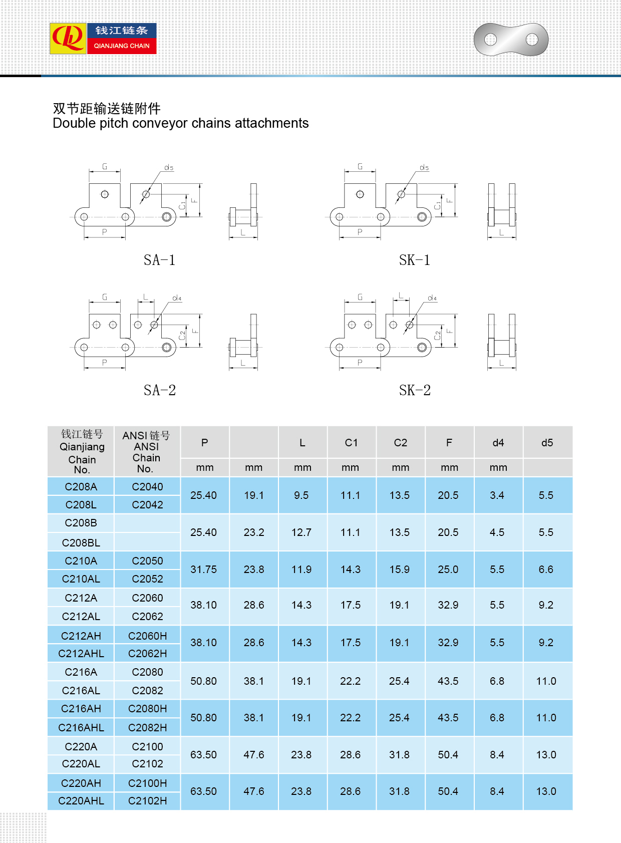 Accesorii pentru lanțuri transportoare cu pas dublu