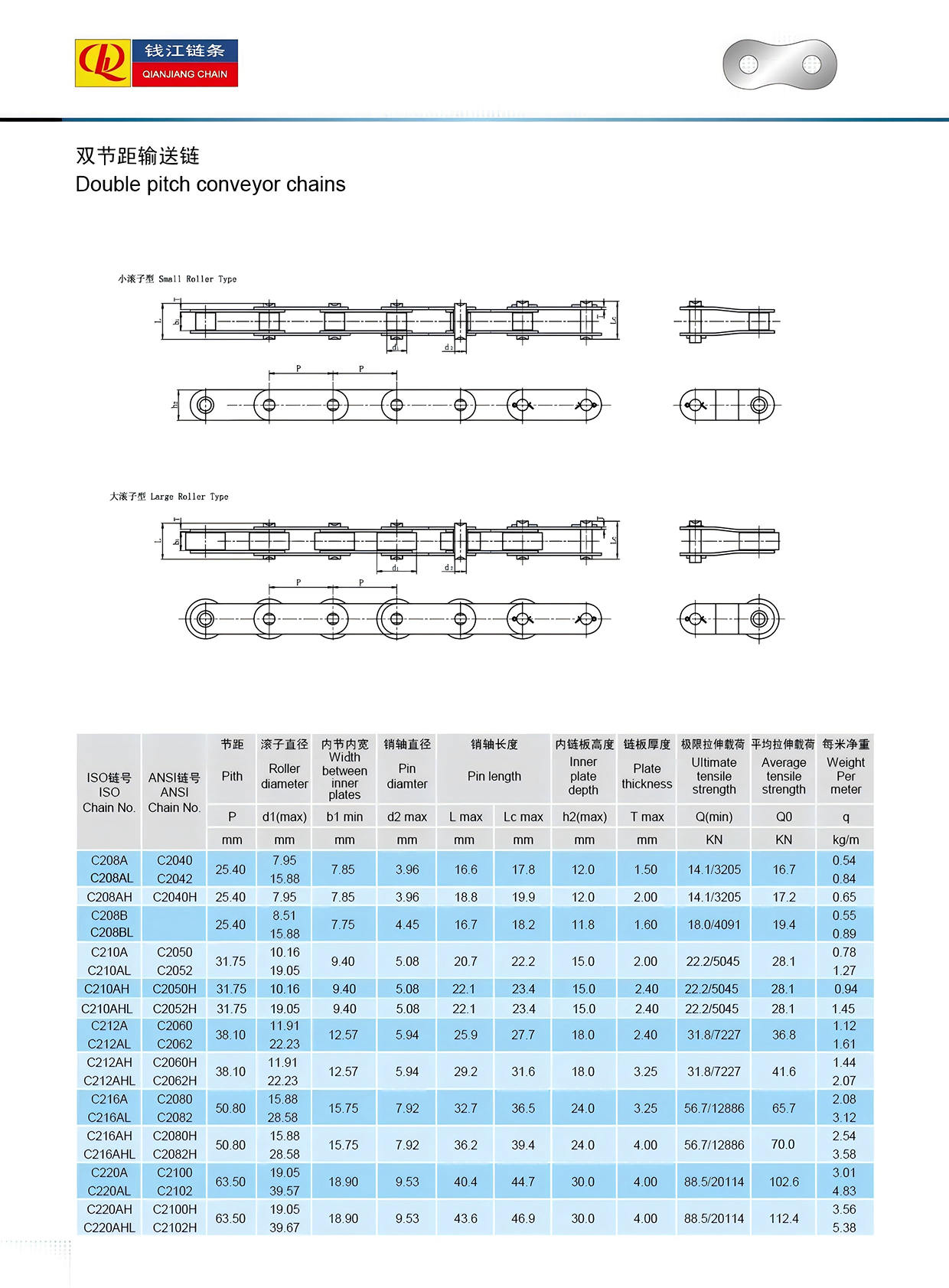 Lanțuri transportoare cu pas dublu