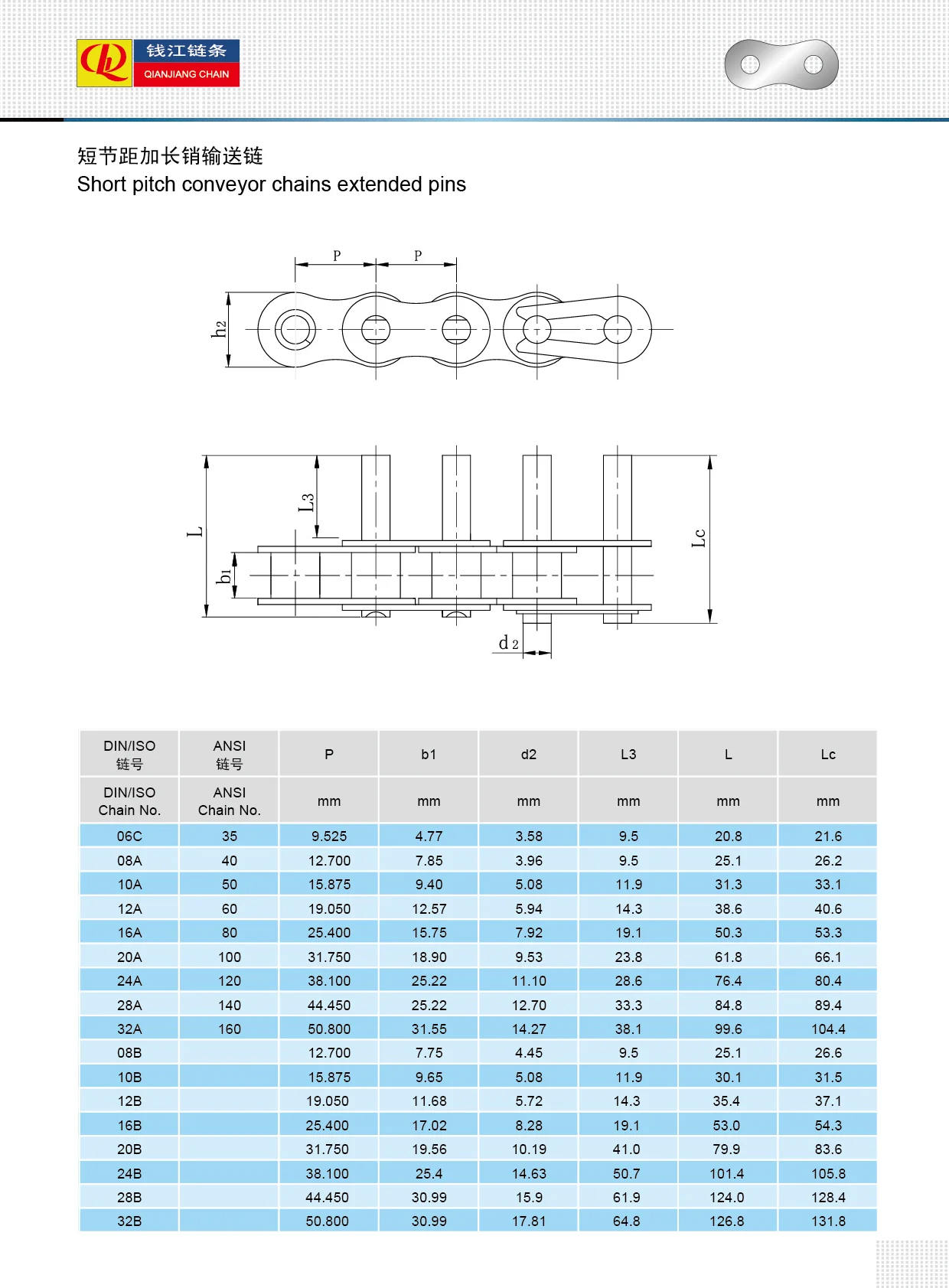 Lanțurile transportoare cu pas scurt cu știfturi extinse sunt special concepute pentru a oferi performanțe precise și fiabile în medii solicitante de manipulare a materialelor. Știfturile extinse ies dincolo de lățimea standard a lanțului, permițând atașarea ușoară a dispozitivelor de fixare, lamele sau consolele personalizate, făcându-le extrem de versatile pentru sisteme de automatizare, sortare și linie de asamblare.