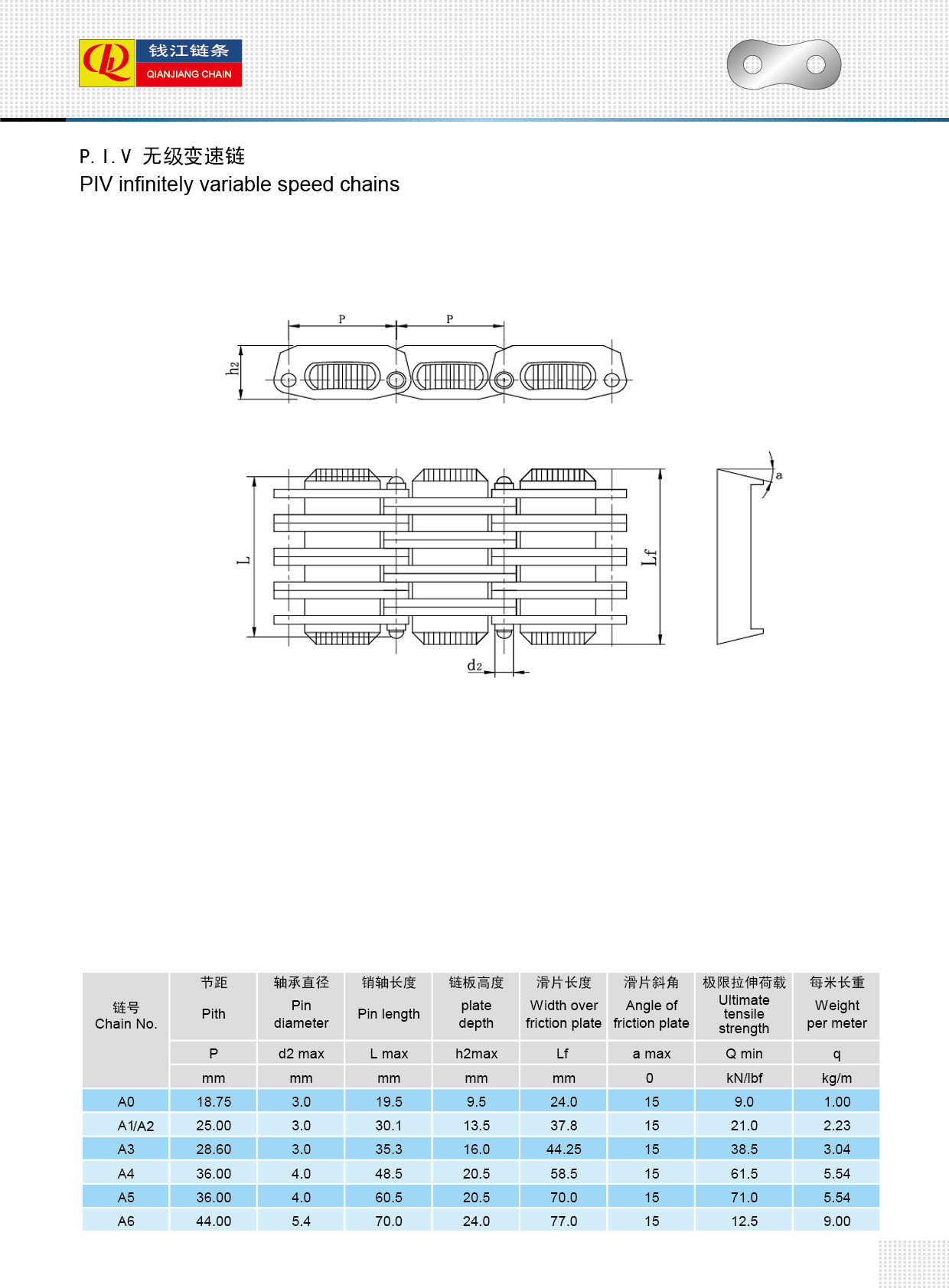 PIV lanțuri de viteză infinit variabilă cu foi de glisare
