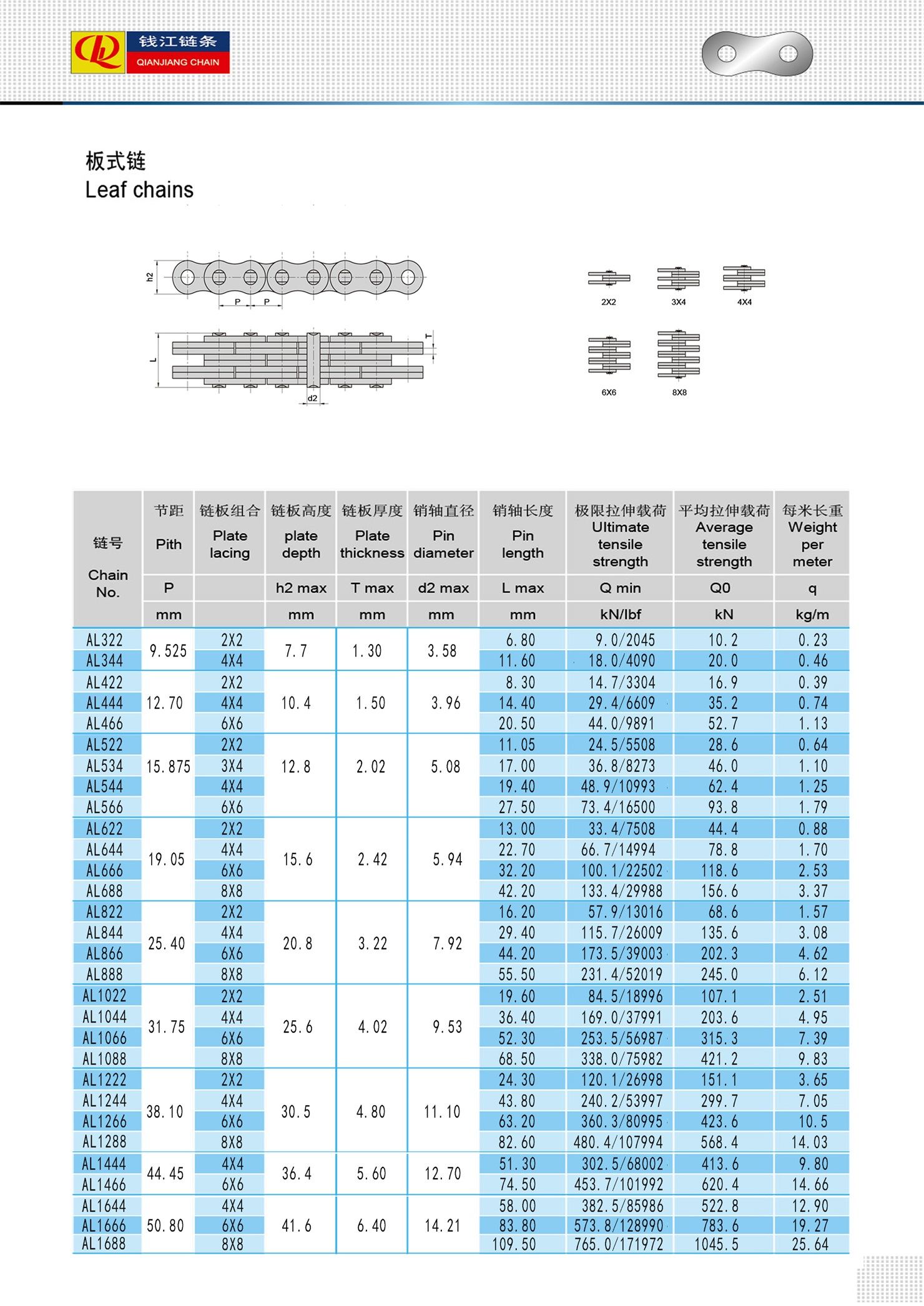 (Seria AL) Lanțuri cu frunze de înaltă rezistență de calitate industrială