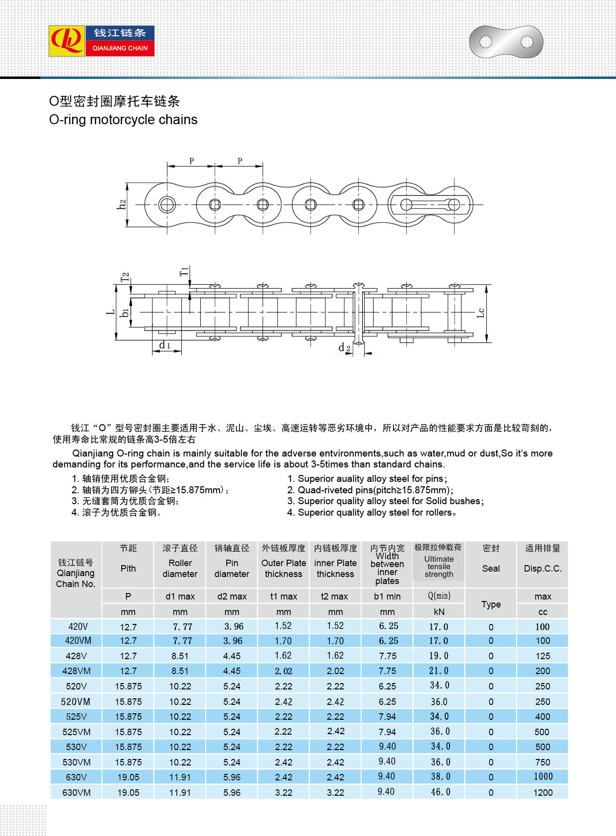 Ceea ce diferențiază lanțurile O-ring este performanța lor excepțională. Designul etanș minimizează frecarea, oferind o transmisie lină a puterii și eficiența consumului de combustibil. Indiferent dacă călătoriți pe străzile orașului sau abordați terenuri accidentate, acest lanț asigură livrarea constantă a cuplului fără a compromite rezistența.