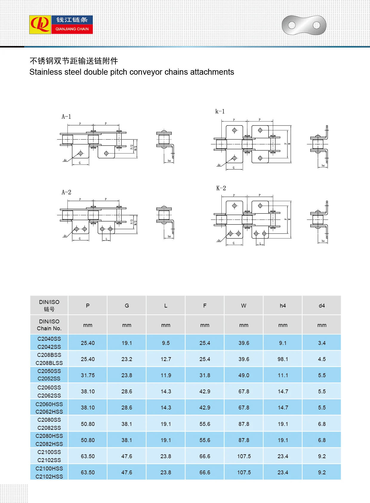 Accesorii pentru lanțuri transportoare cu pas dublu din oțel inoxidabil